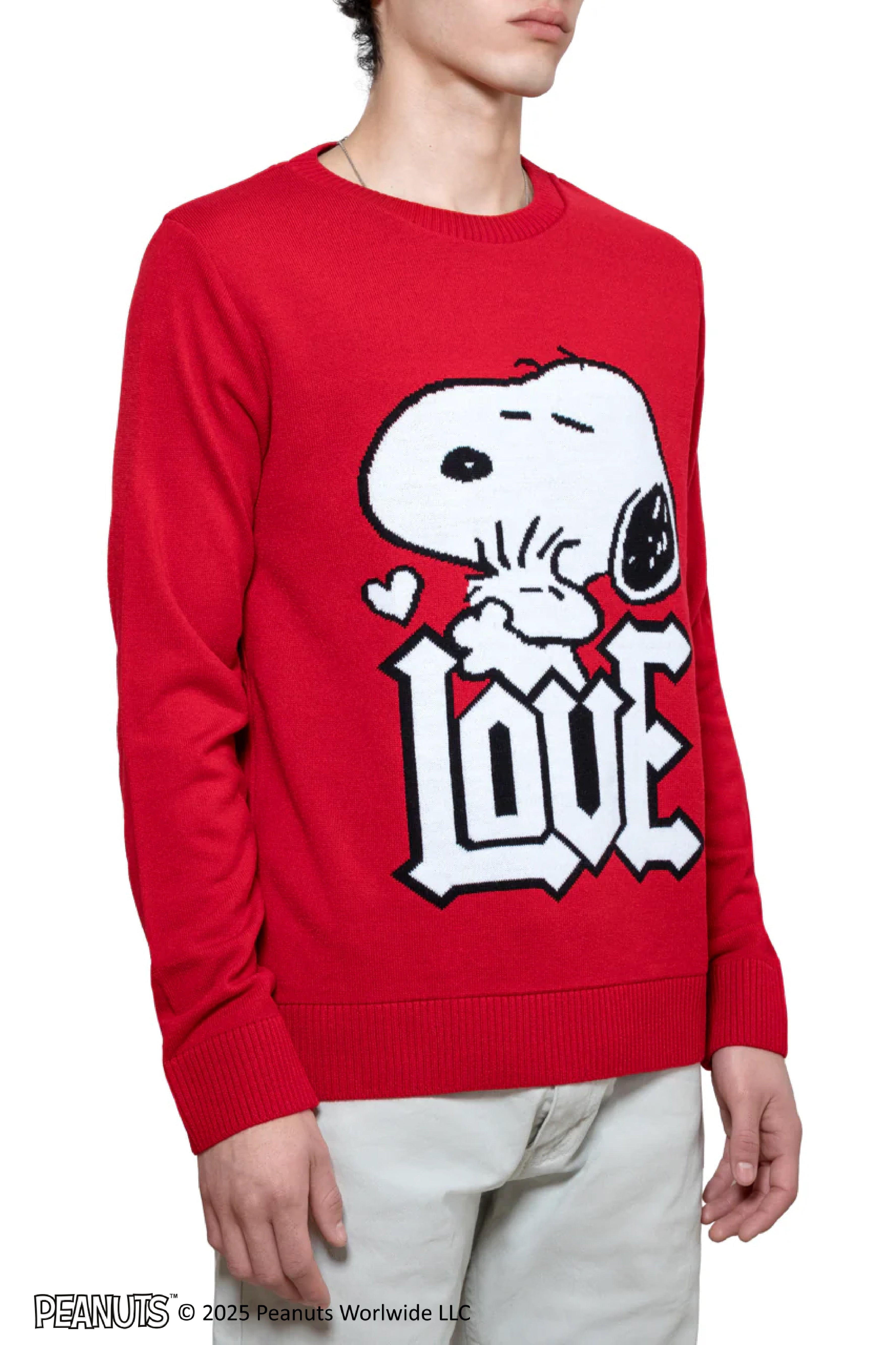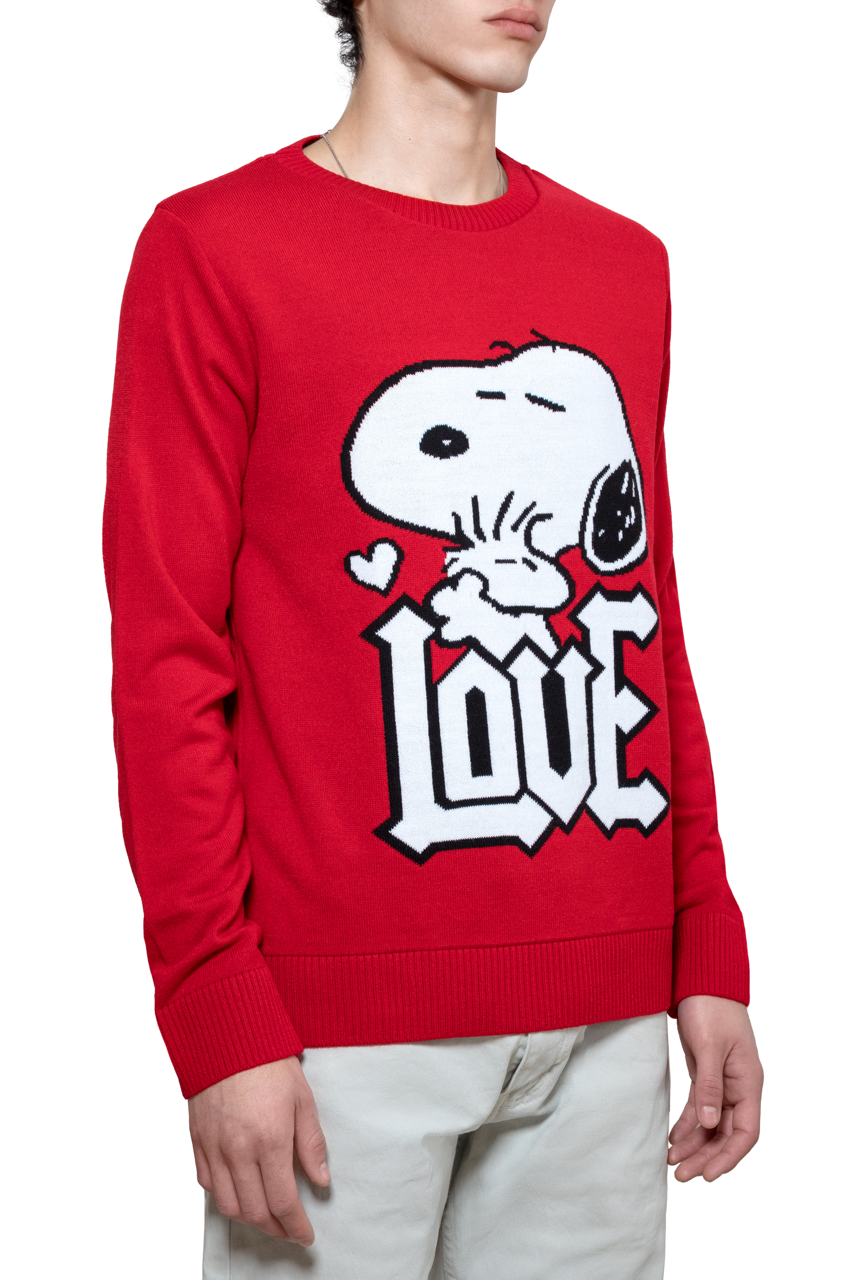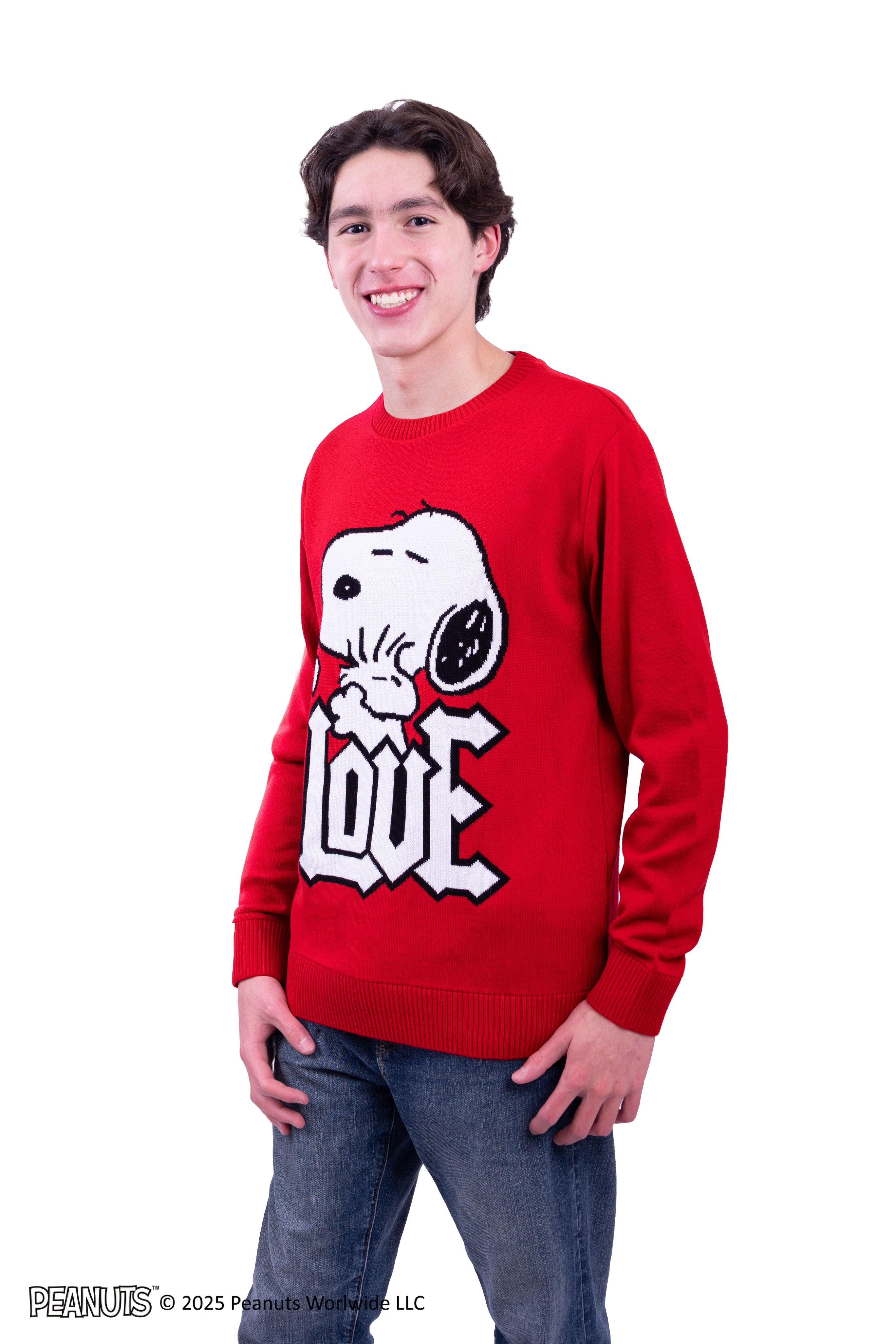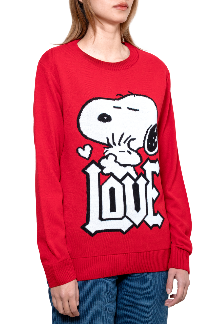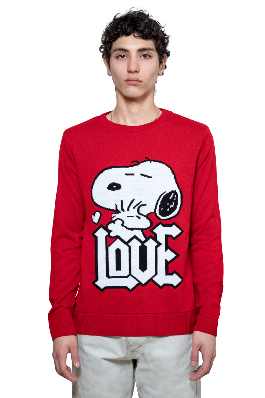 Este suéter destaca por su icónico y colorido gráfico tejido de Snoopy, con la palabra "LOVE" en primer plano, que añade un toque de diversión y nostalgia a cualquier atuendo.