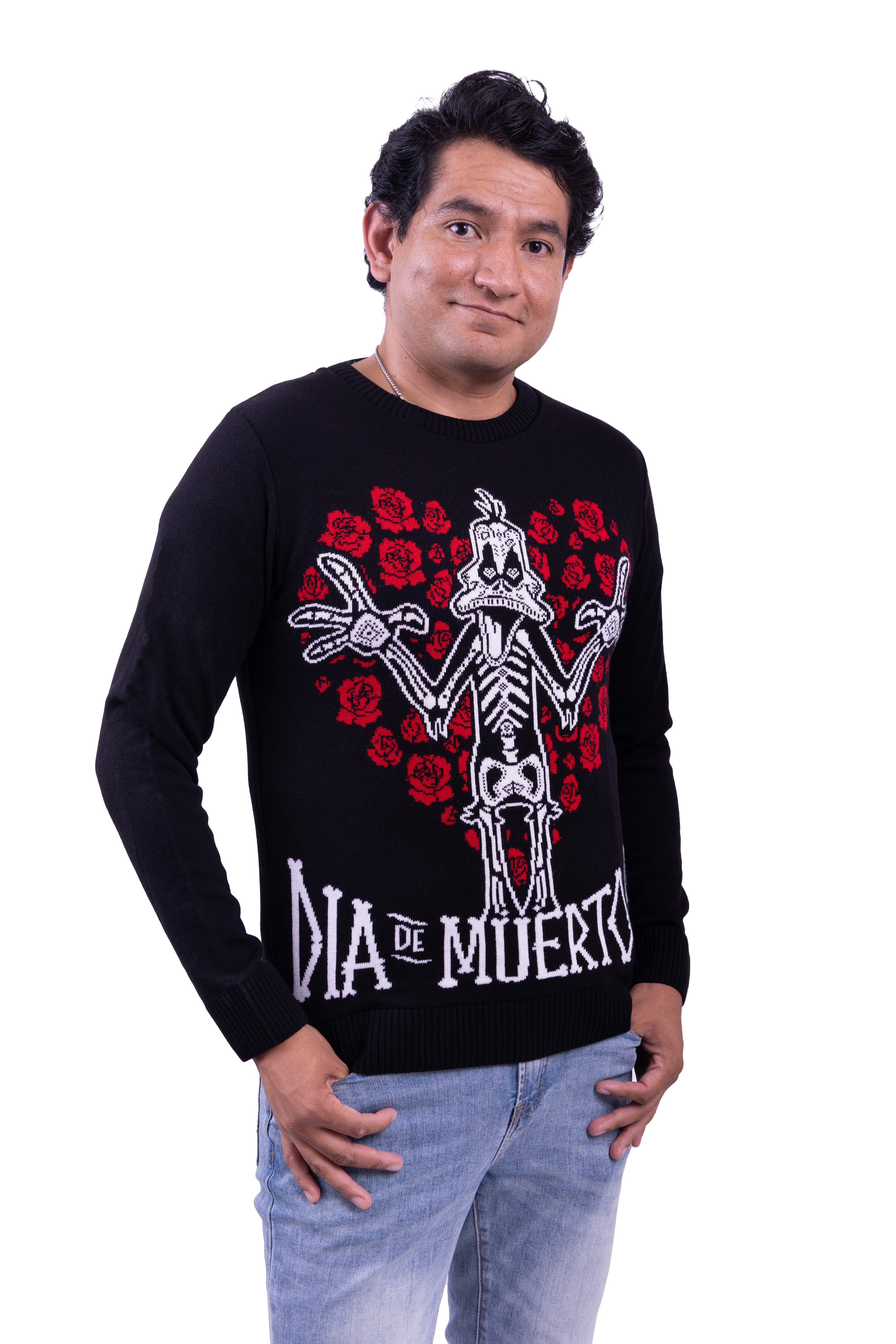 El Suéter De Looney Tunes Con Pato Lucas Día De Muertos es un suéter diseñado para quienes buscan celebrar la tradición de una manera divertida y colorida. Este modelo para hombre y mujer destaca por su estampado vibrante que rinde homenaje a la cultura mexicana en una época del año especial. Confeccionado en 100% acrílico, garantiza comodidad y calidez para las estaciones de otoño e invierno.