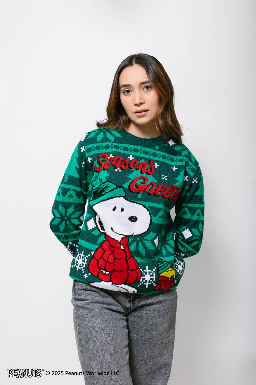 Suéter licencia oficial Snoopy Season's Greetings Verde